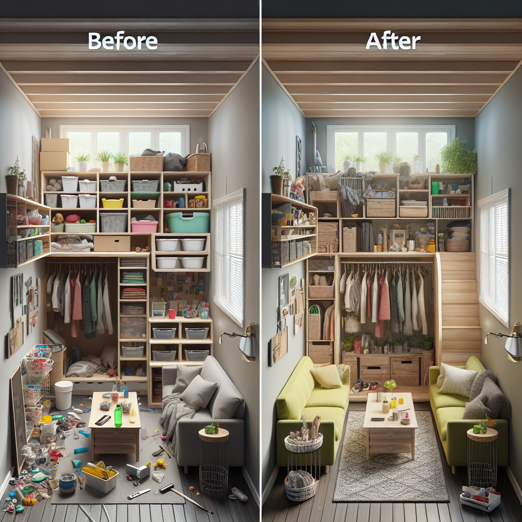 - Utilize vertical wall space, repurpose existing furniture, and build multi-purpose units to declutter your home without breaking the bank.